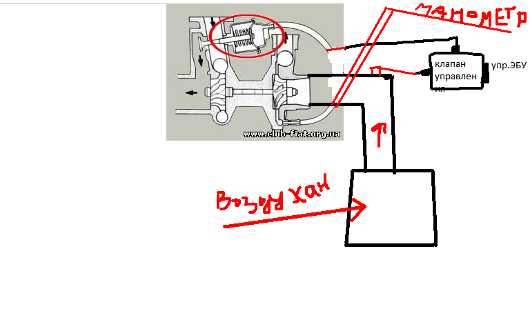 | Должно быть приблизительно так,может конечно к клапану идти еже одна шланга,она может быть соединена с входом в турбину.